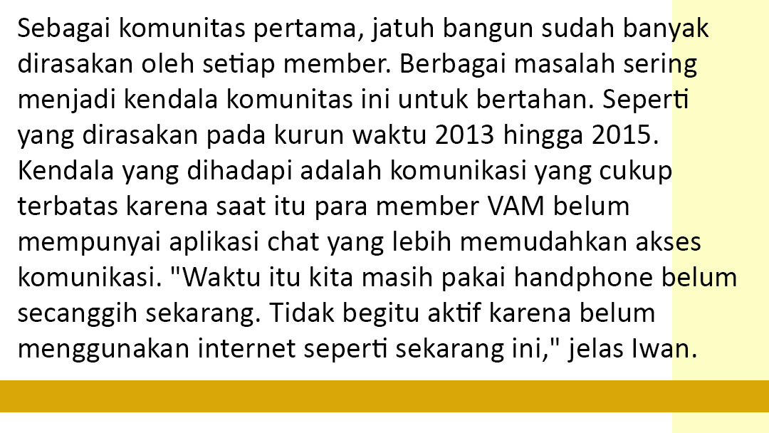 VAM, Pernah Vakum Namun Tetap Bangkit...